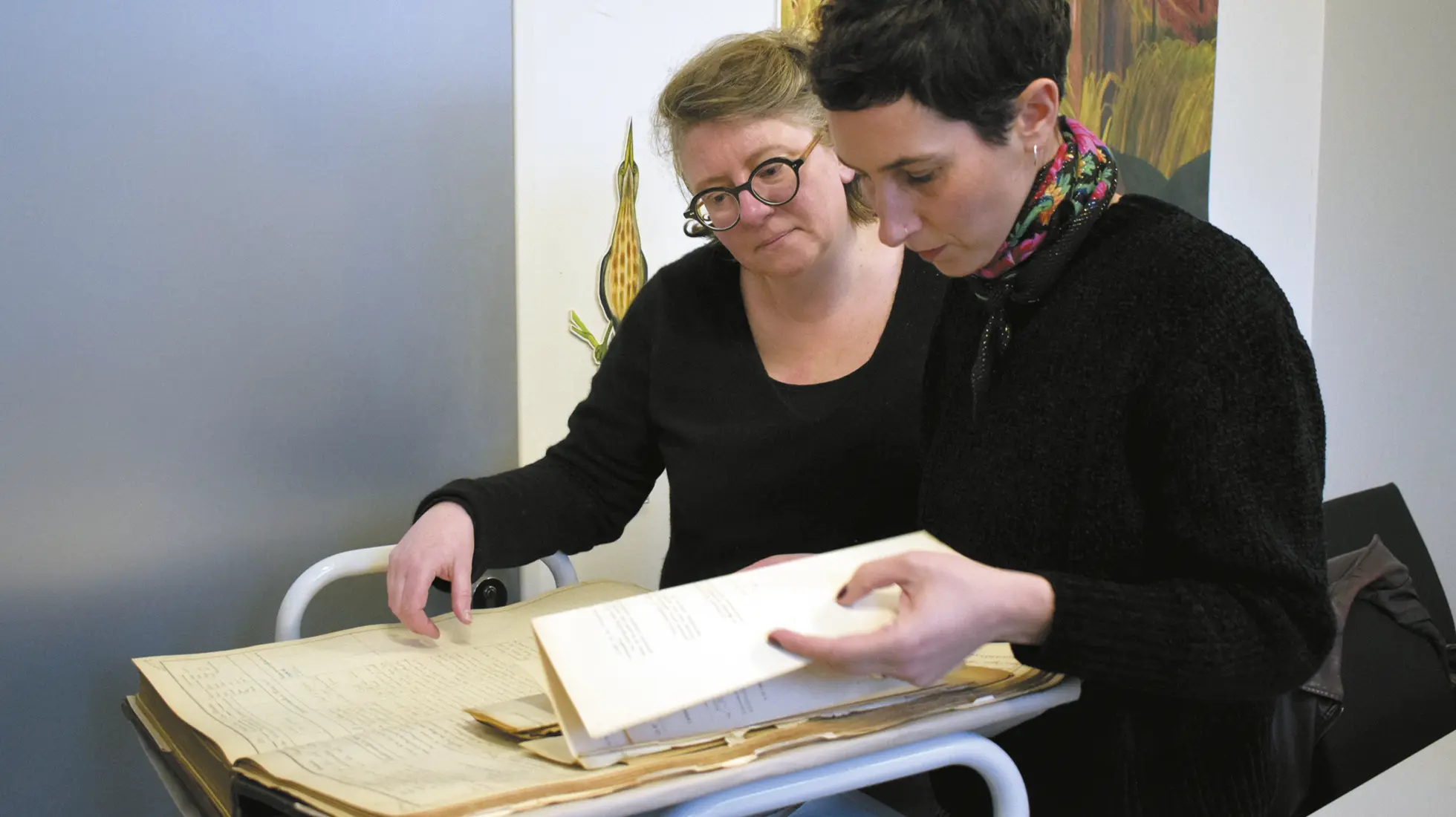 Lydie Porée et Mathilde Pintault manipulent les archives carcérales.