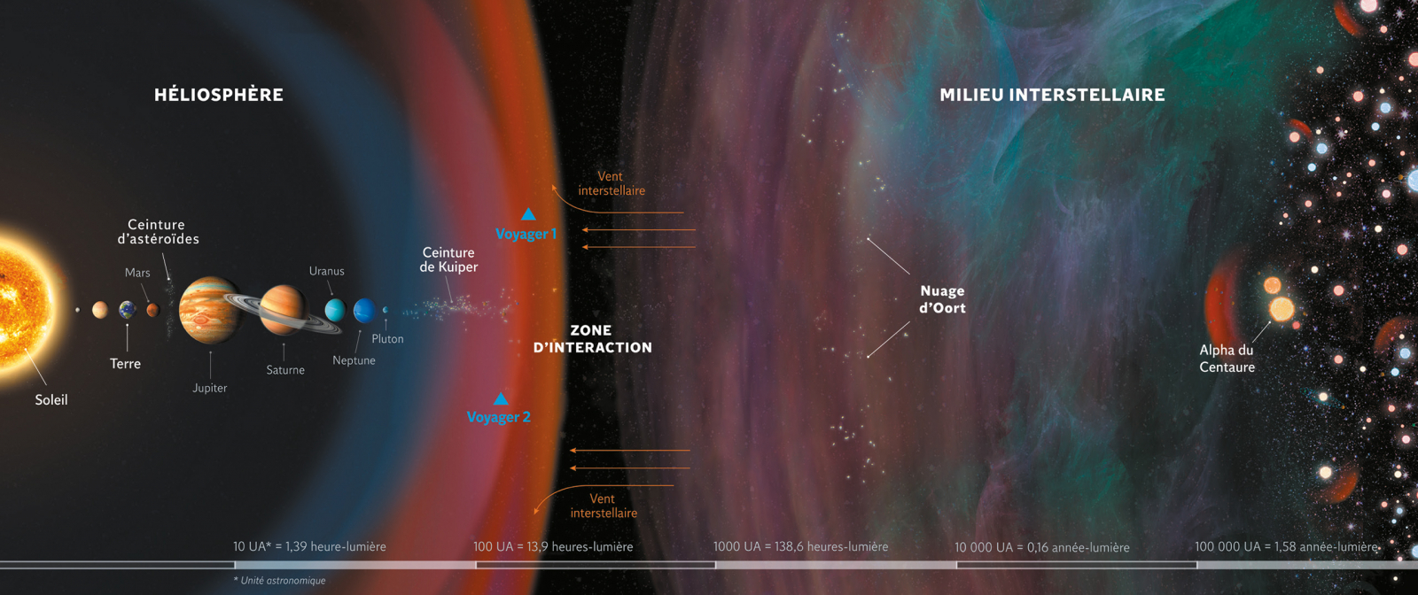 « Aujourd’hui, c’est clairement une utopie ! », confient à l’unisson Priscilla Abraham et Bruno Mauguin, responsables du planétarium de l’Espace des sciences à Rennes. Sachant que l’une des sondes Voyager envoyées par la Nasa en 1977 a survolé Neptune 12 ans plus tard et qu’il a fallu 35 ans pour sortir de notre système planétaire1, il est vrai qu’envoyer des hommes dans le milieu interstellaire rime aujourd’hui avec mission impossible.