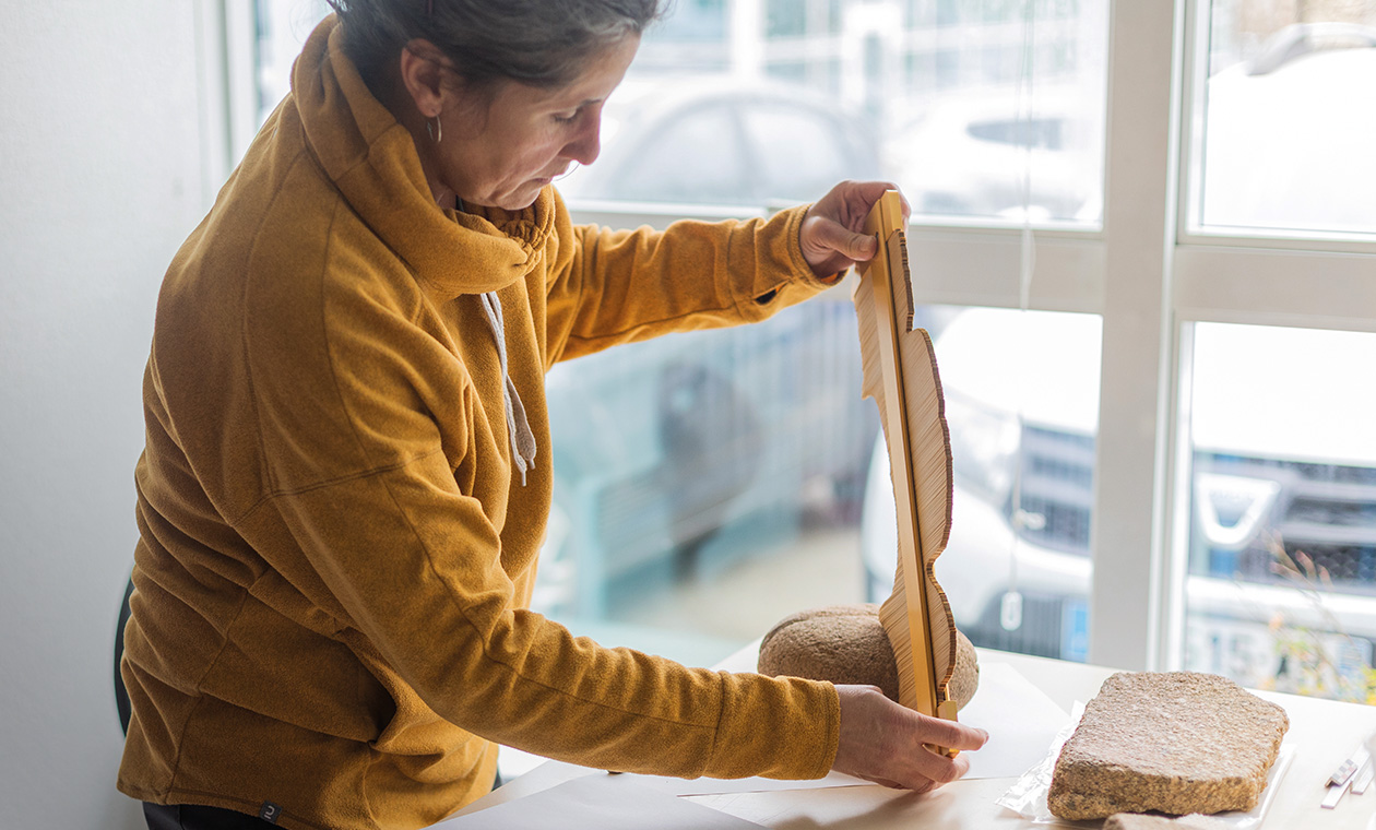Dans l’un d'eux, Vérane Brisotto soupèse, retourne et effleure d’imposants blocs de pierre, à la recherche d’un indice qui pourrait l’aider à percer leurs mystères. Comme cette sphère un peu aplatie, cerclée d’une rainure profonde entachée de rouille. « C’était un poids de filet de pêche, il faut imaginer un filin métallique enroulé autour », reconstitue la lithicienne, spécialiste des outils en pierre. Sa discipline est récente. Les grosses pierres ne sont pas les vestiges les plus nobles. Il y a quelques dizaines d’années, elles servaient même à caler les bâches pendant les fouilles. Mais aujourd’hui, à partir d’une entaille ou d’une forme, Vérane retrace la vie et l’usage des objets.